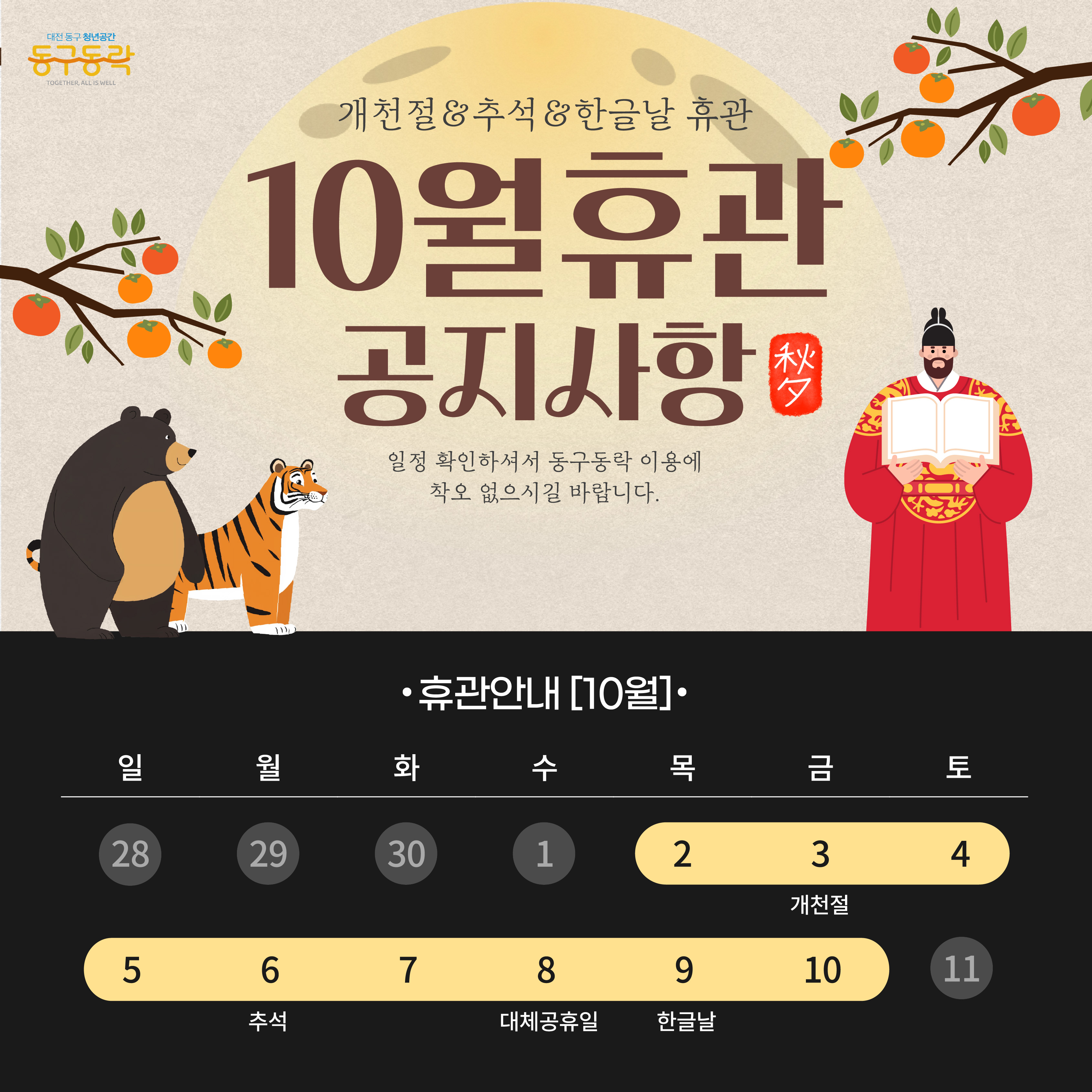 일정 확인하셔서 동구동락 이용에 착오 없으시길 바랍니다. -