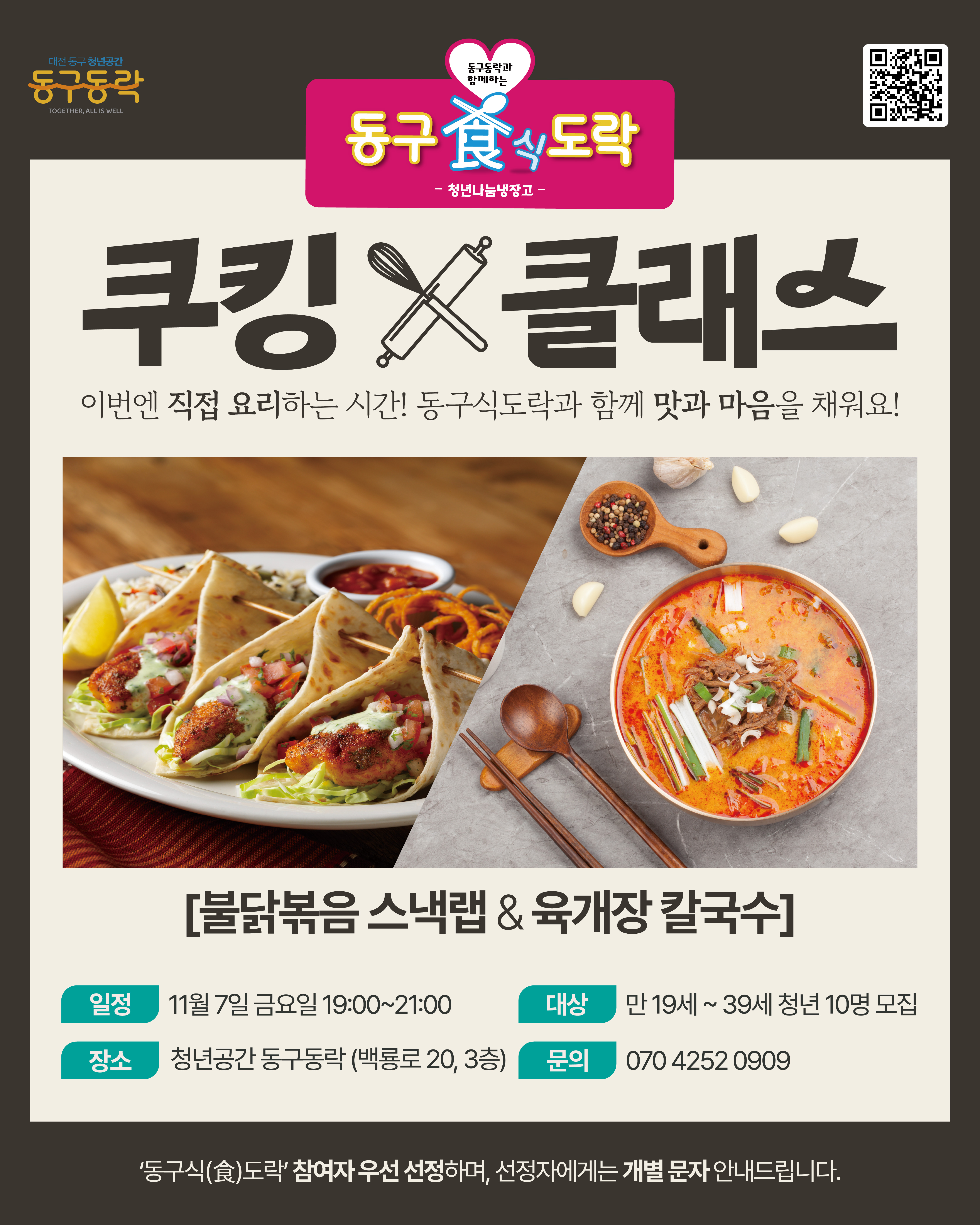 청년공간 동구동락에서 열리는 동구식(食)도락 쿠킹 클래스!