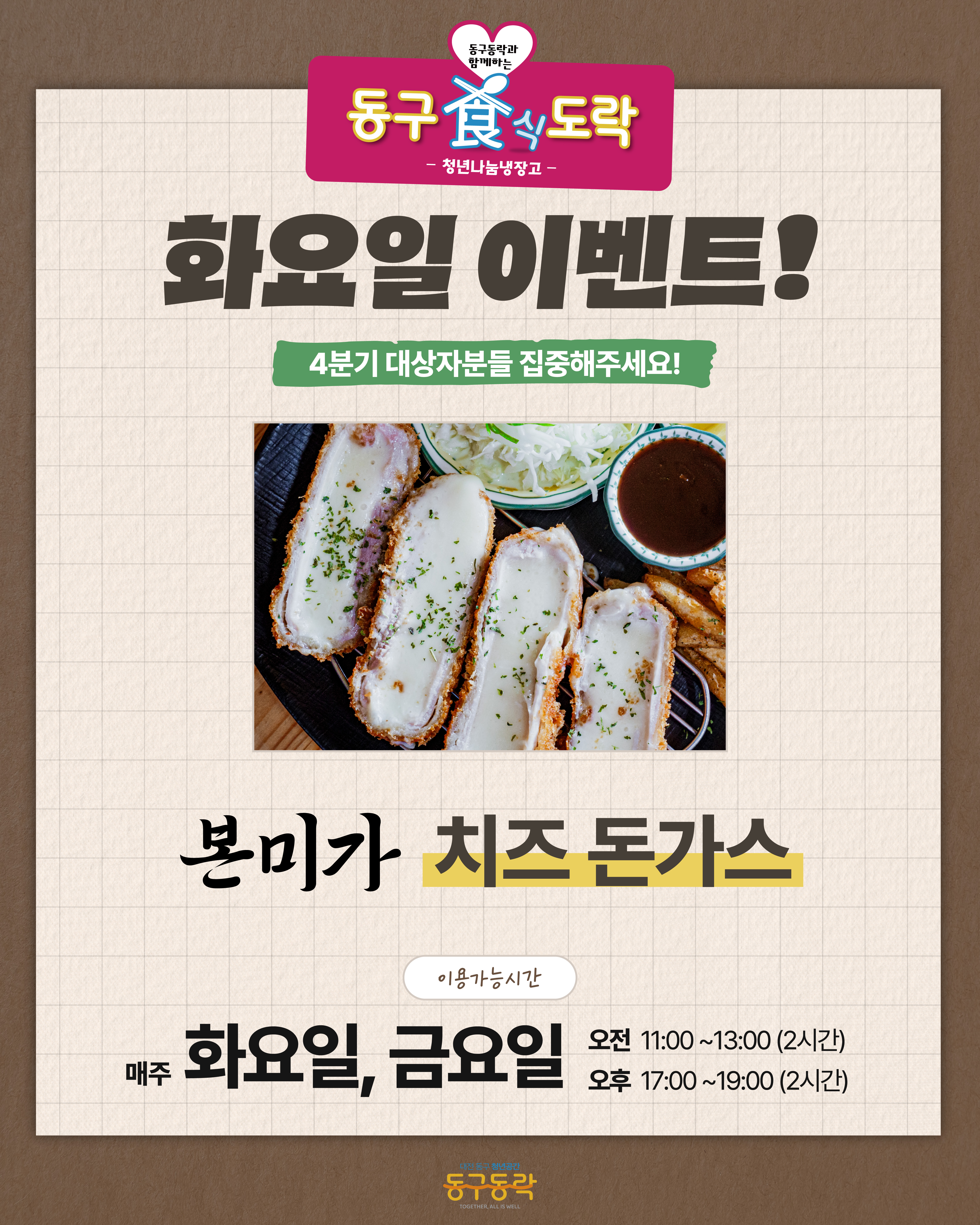 매주 화/금, 11~13시, 17~19시 동구동락에서 맛있는 한 끼 챙겨가세요! -