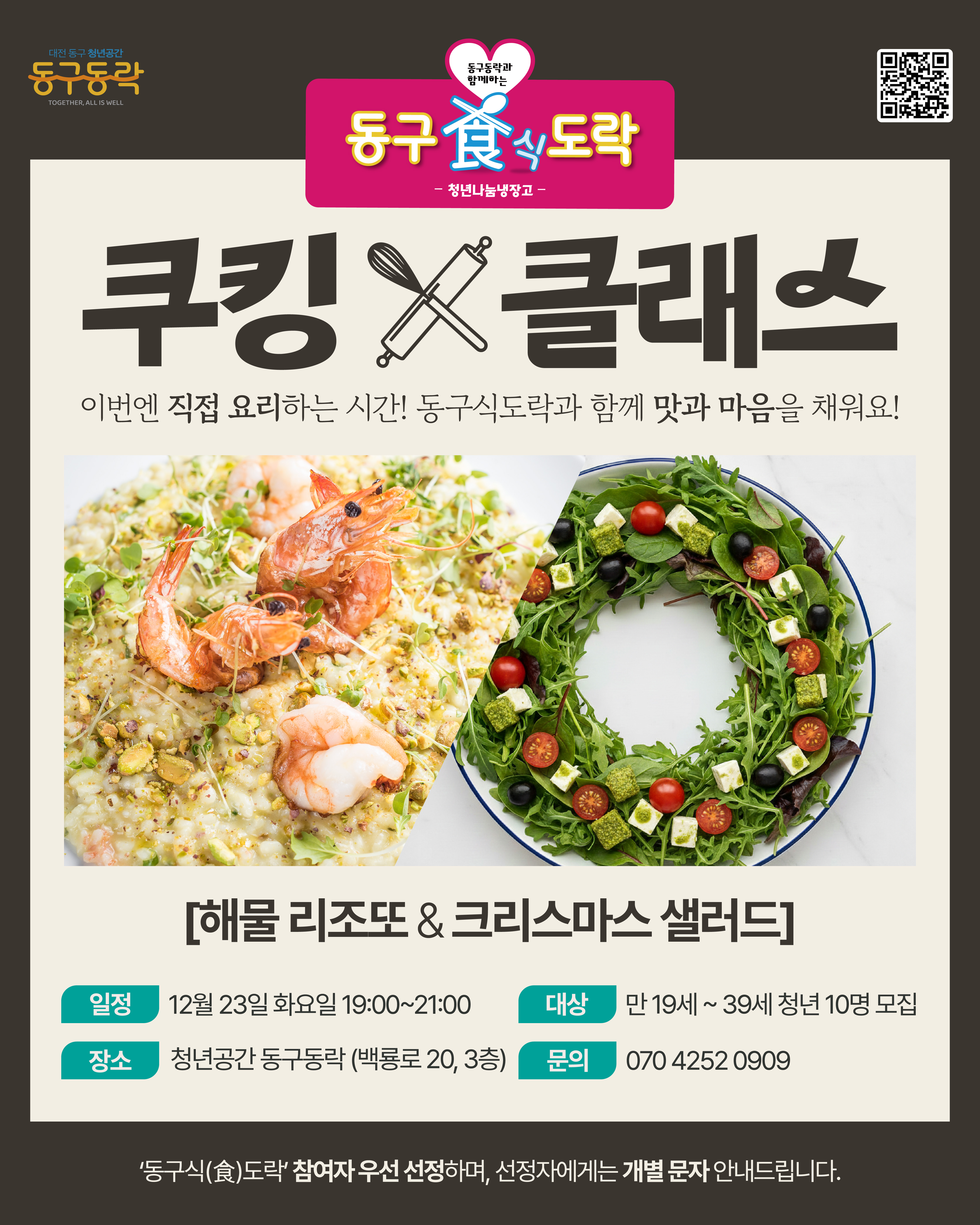 ※ 동구식(食)도락 참여자 우선 선정하며, 선정자에게는 개별 문자 안내드립니다. -