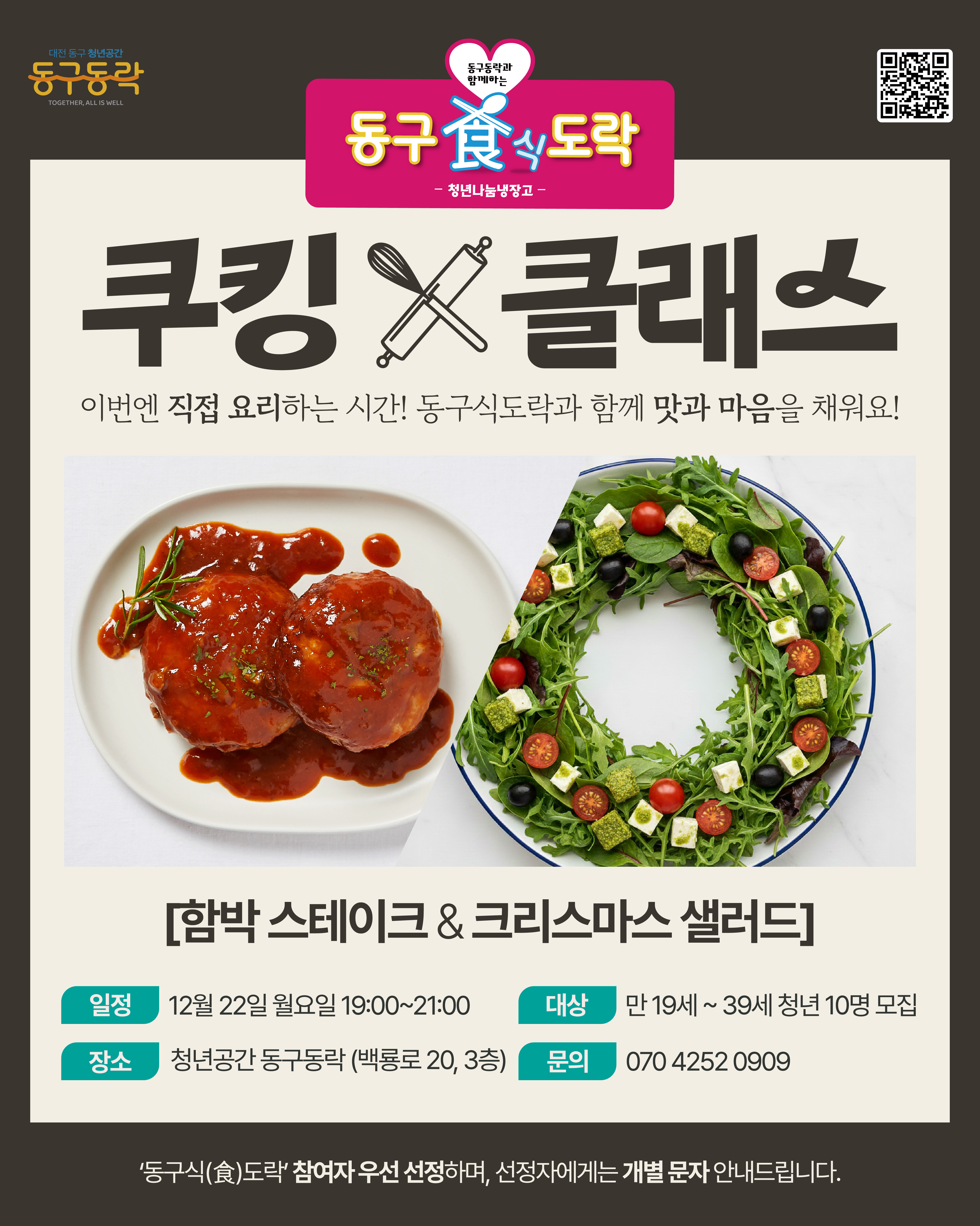 [동구식(食)도락 쿠킹 클래스] 함박 스테이크 & 크리스마스 샐러드 / 해물 리조또 & 크리스마스 샐러드