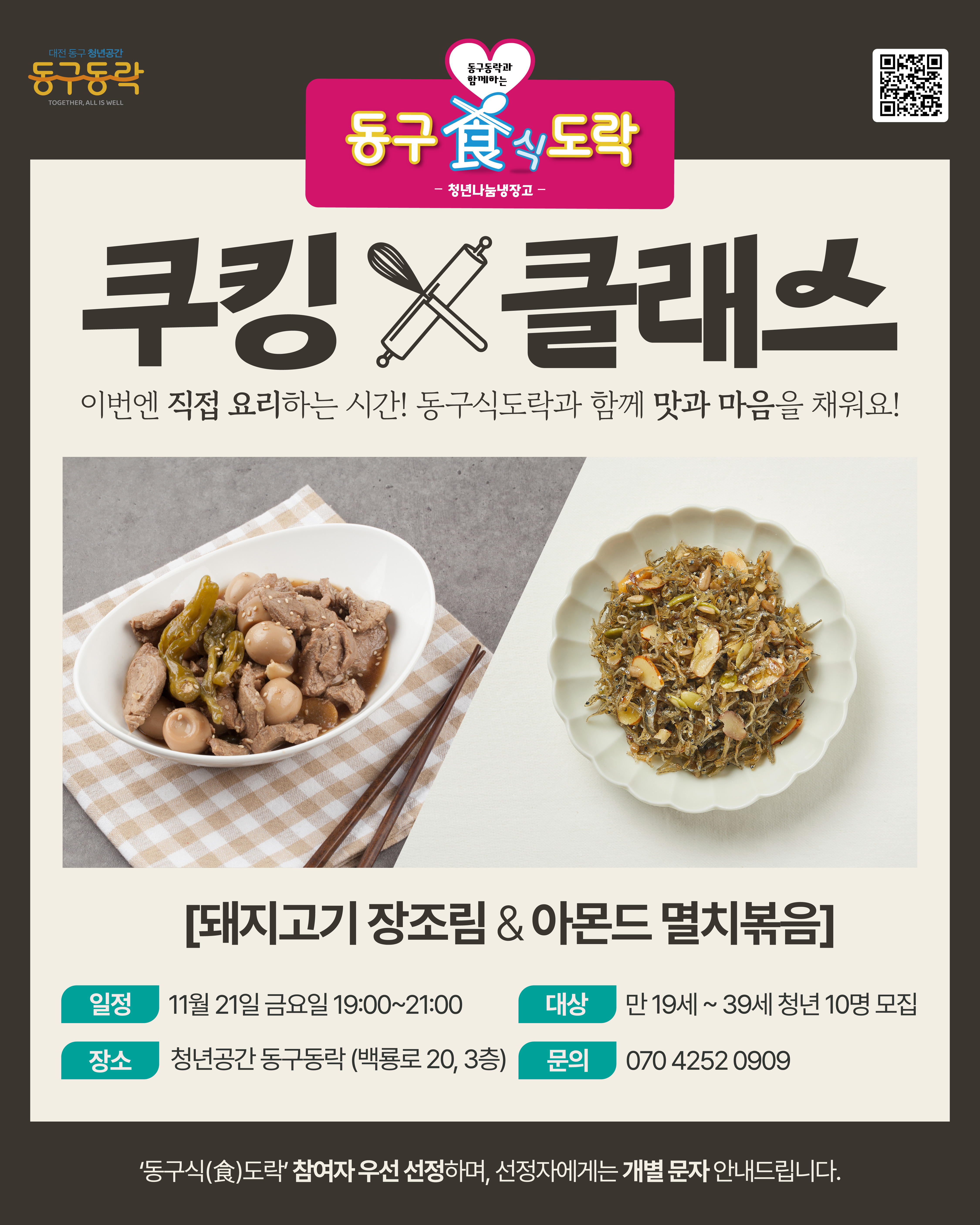 청년공간 동구동락에서 열리는 동구식(食)도락 쿠킹 클래스!