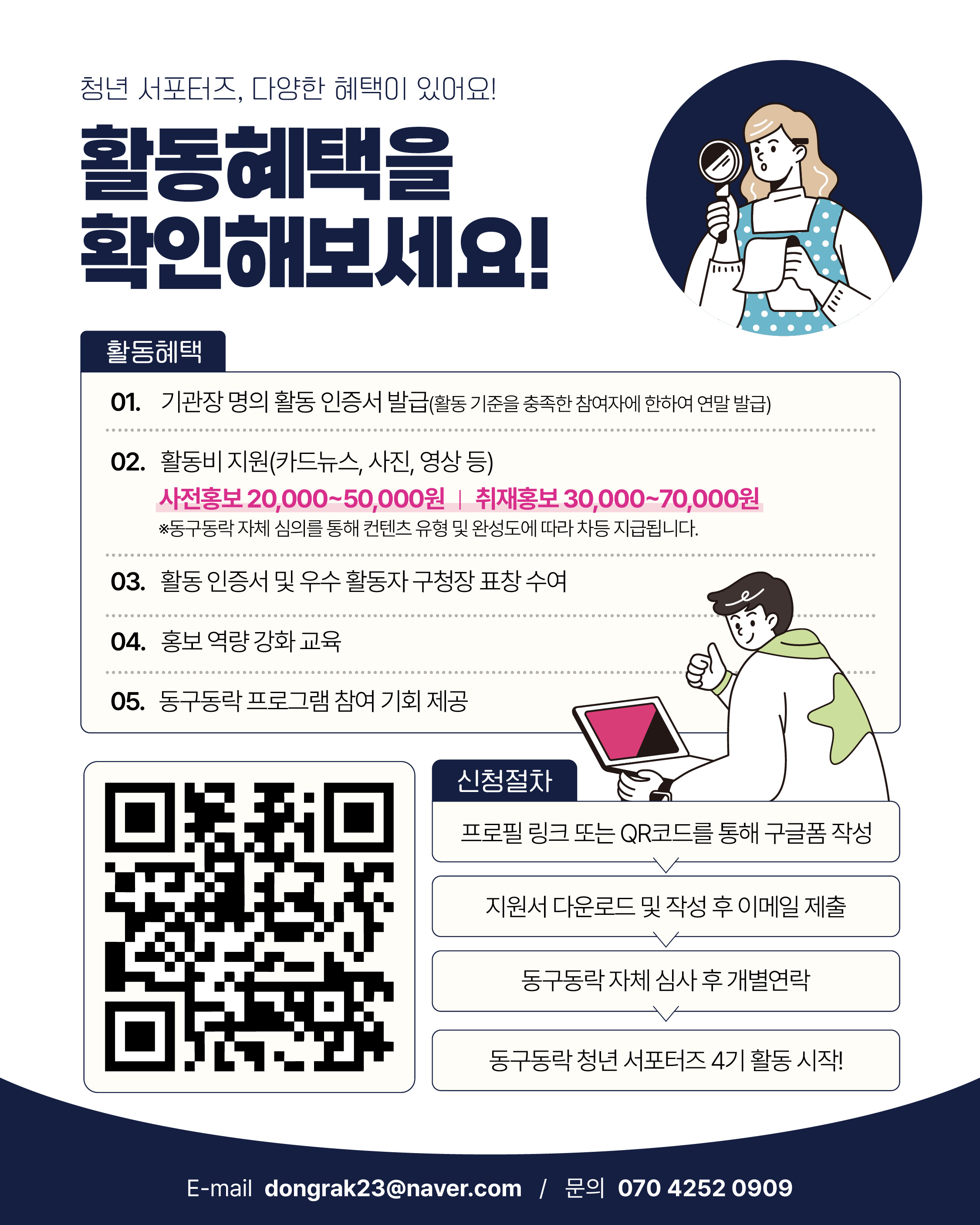 동구동락 프로필 링크(@donggu_youth) 또는 QR코드로 간편 신청