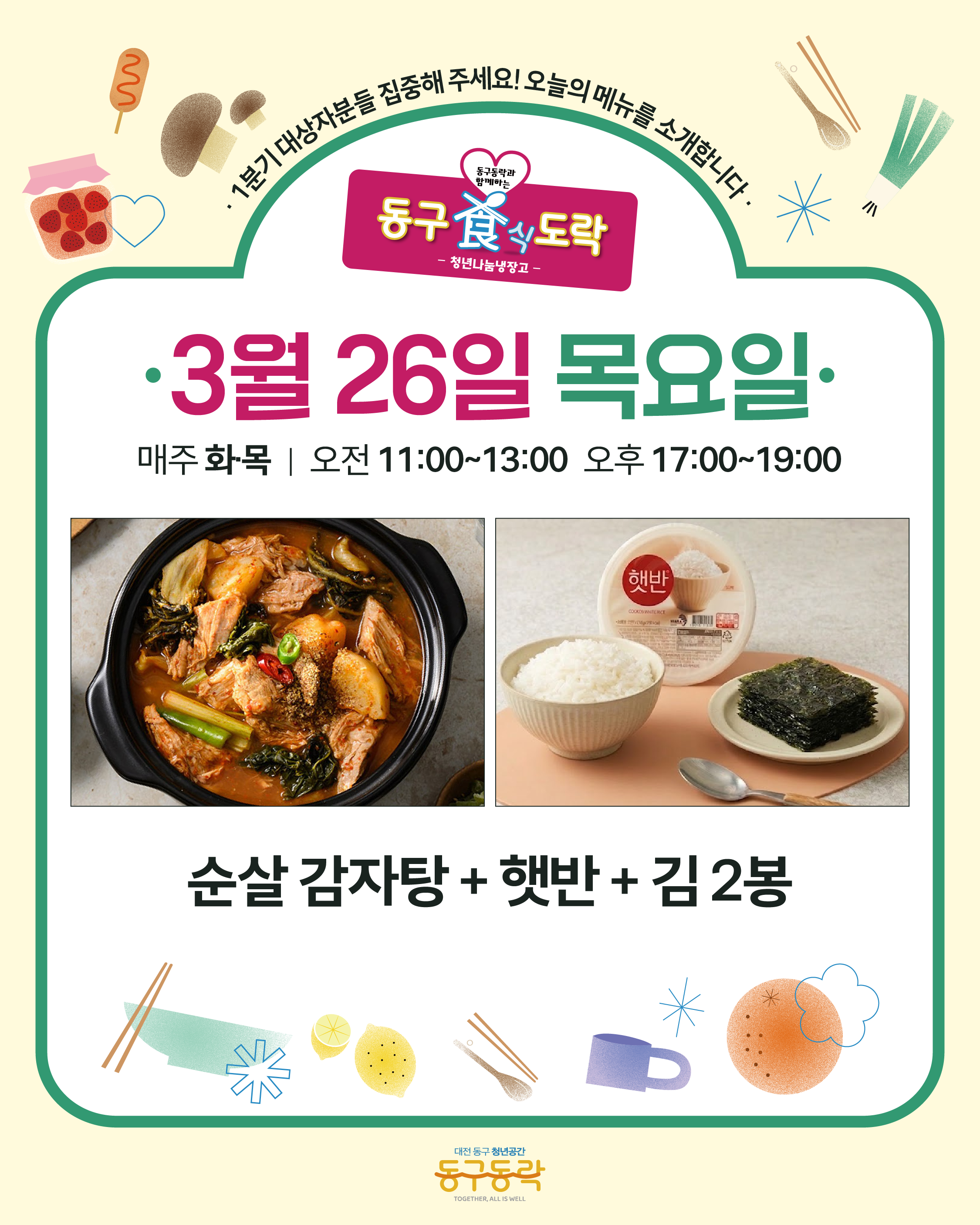 동구동락에서 맛있는 한 끼 챙겨가세요!
