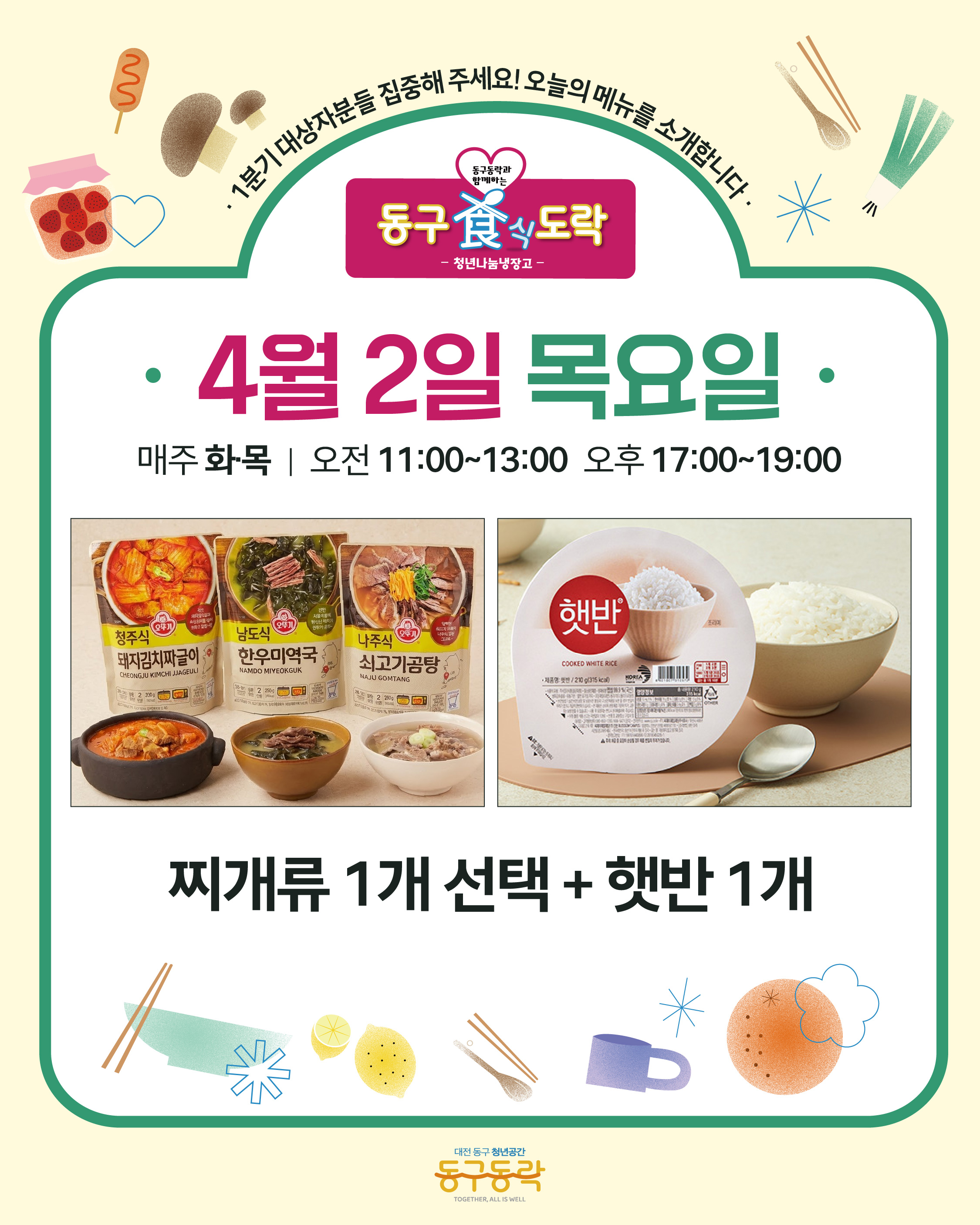 동구동락에서 맛있는 한 끼 챙겨가세요! -