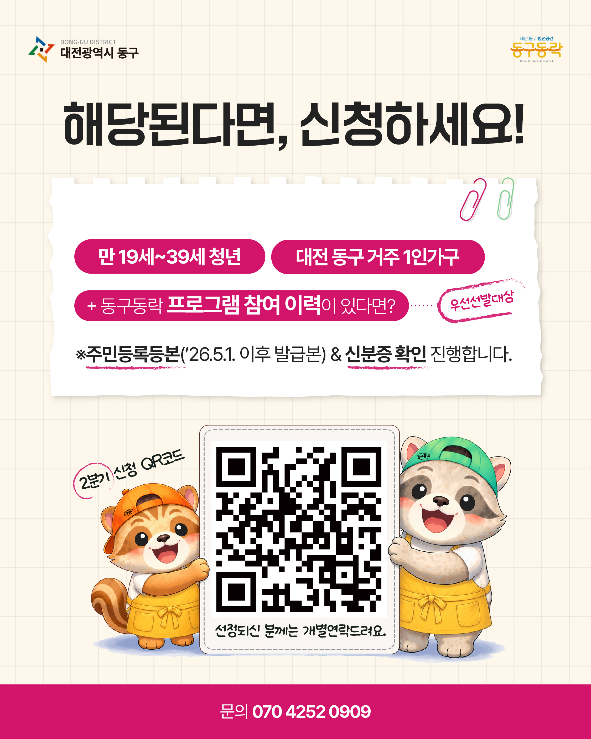 + 동구동락 프로그램 참여 이력이 있다면?우선 선발 대상!