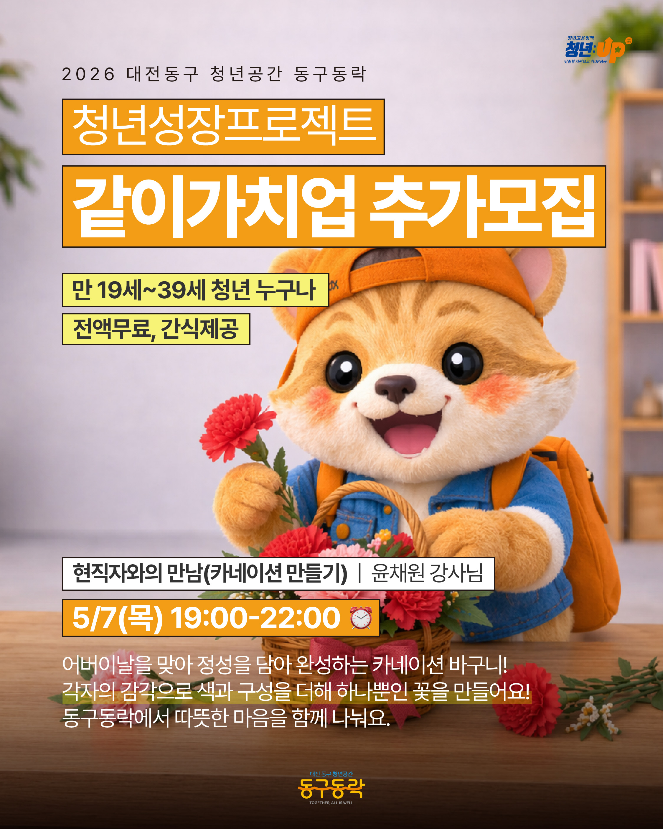 청년성장프로젝트 같이가치업 [5/7(목) 현직자와의 만남(카네이션 만들기)] 참여자 추가모집!
