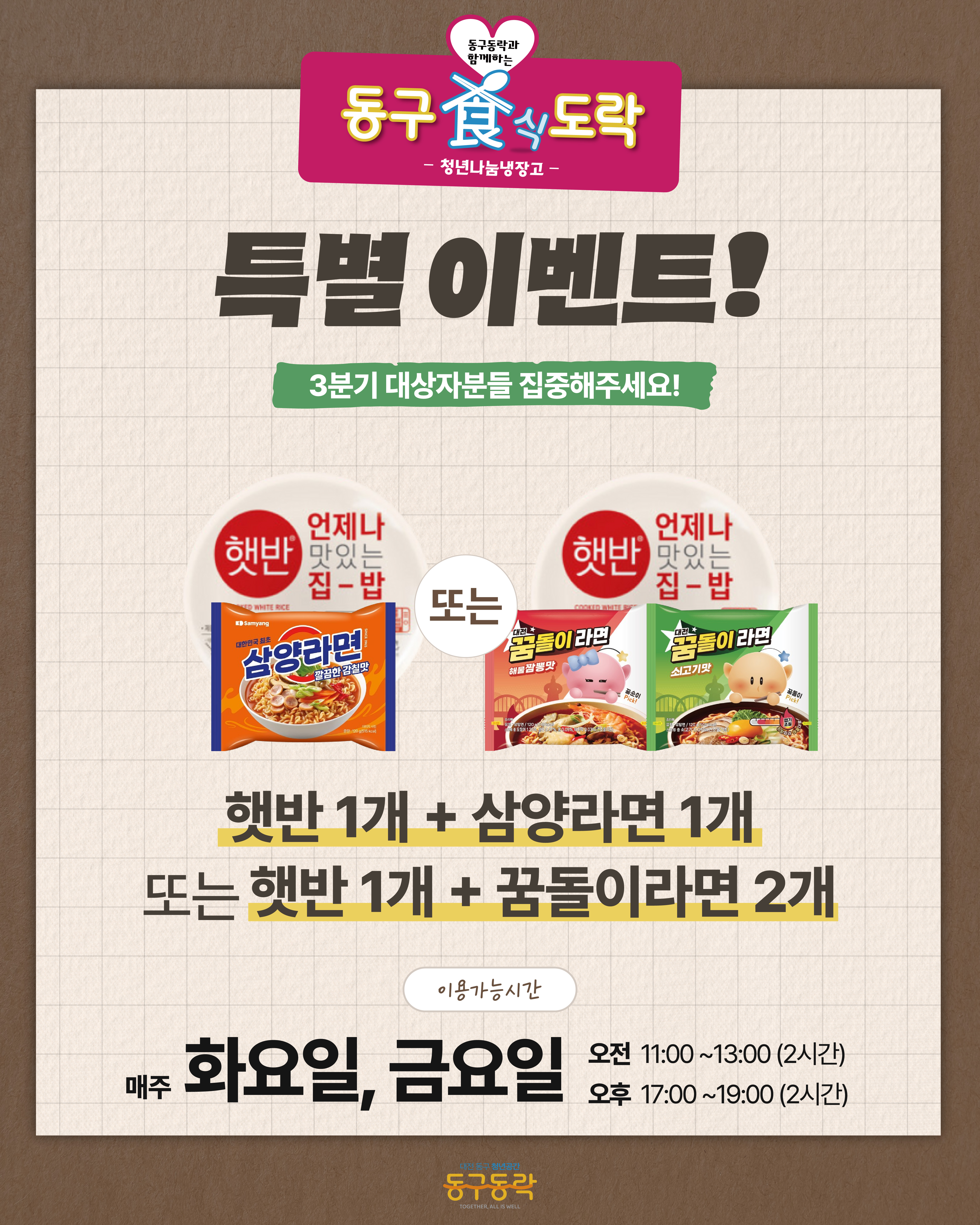 [동구식(食)도락] 안녕하세요, 청년공간 동구동락입니다. 3분기 대상자분들, 집중해주세요!