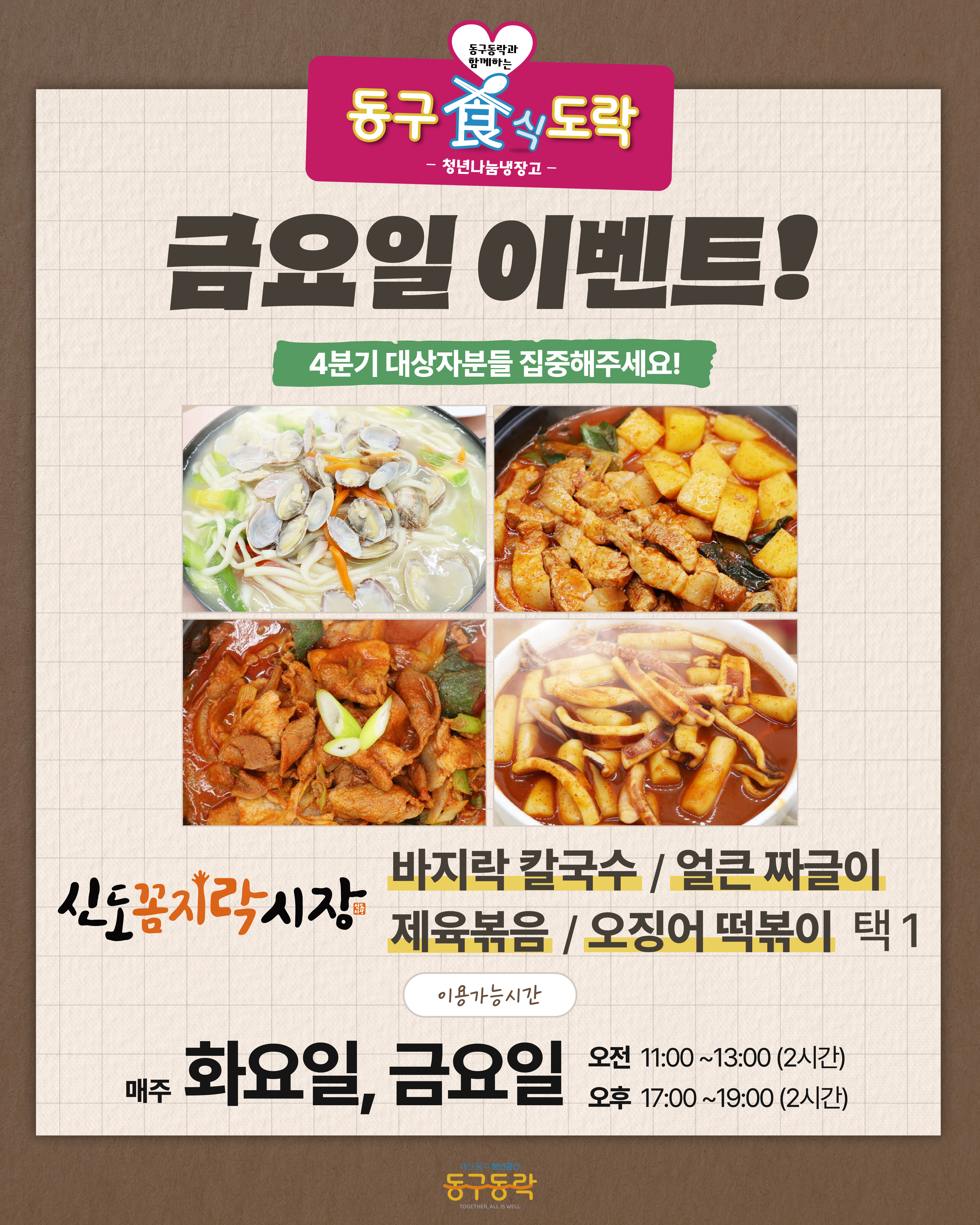 11~13시, 17~19시에 동구동락에서 만나요!