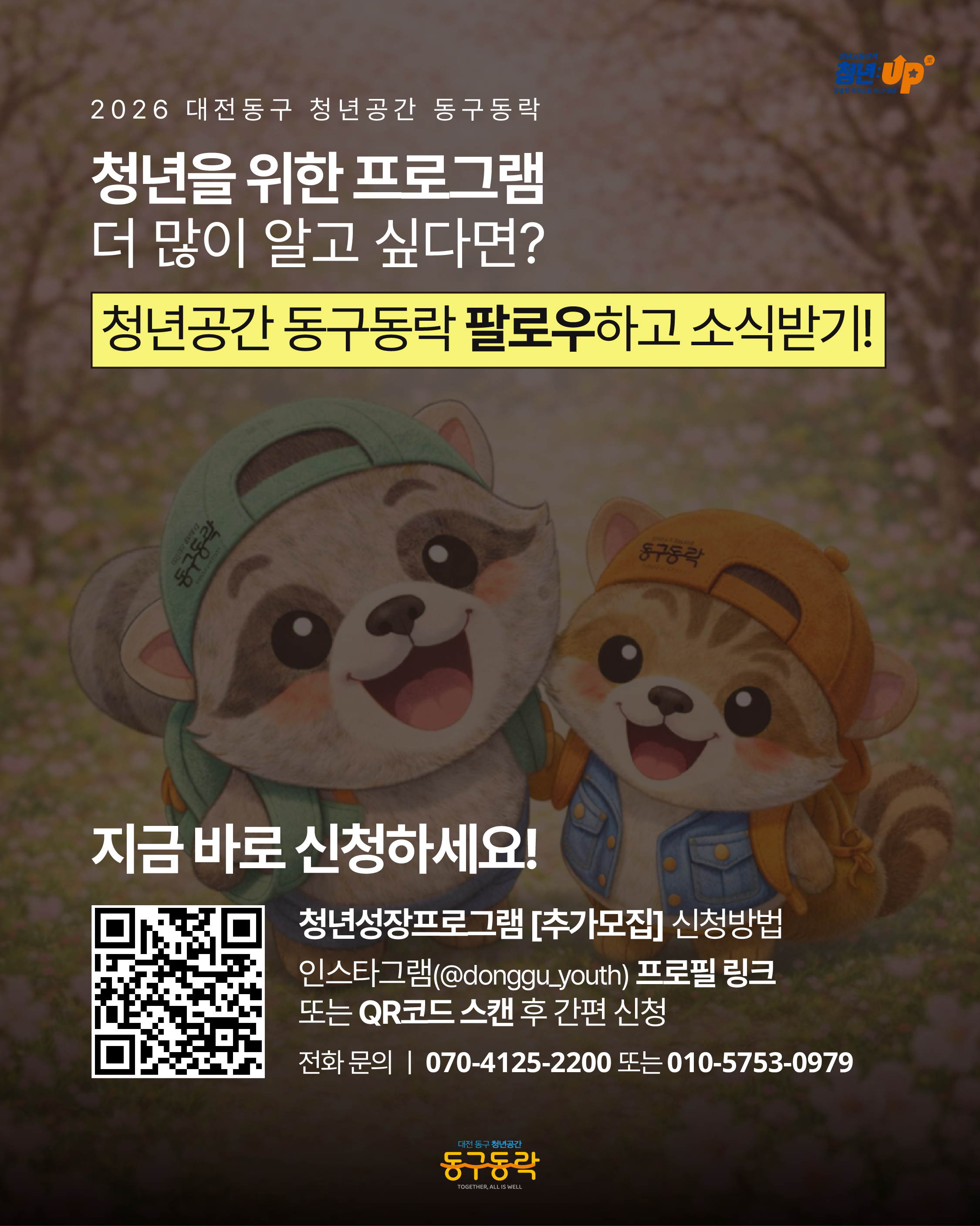 인스타그램(@donggu_youth) 프로필 링크 또는 QR코드 스캔 후 간편 신청
